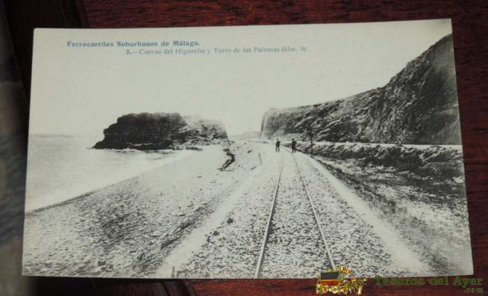 POSTAL DE MÁLAGA. FERROCARRILES SUBURBANOS DE MÁLAGA. N.5, CUEVAS DEL HIGUERON Y TORRE DE LAS PALOMAS KIF 9, NO CIRCULADA. ED. LASCOSTE.