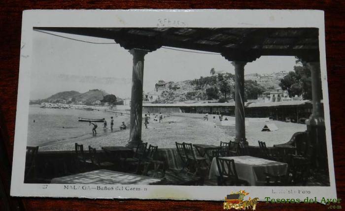 ANTIGUA FOTO POSTAL DE MALAGA. BAÑOS DEL CARMEN, N. 327, FOTO ROISIN, CIRCULADA.