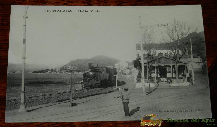ANTIGUA POSTAL DE MALAGA, TREN, LOCOMOTORA, BELLA VISTA, N. 30, EDICION ESPECIAL DE LOS ALMACENES DE LA LLAVE, NO CIRCULADA.