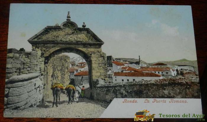 POSTAL DE RONDA, MALAGA, LA PUERTA ROMANA, ED. PURGER & CO. MUNCHEN 2121, NO CIRCULADA. SIN DIVIDIR.