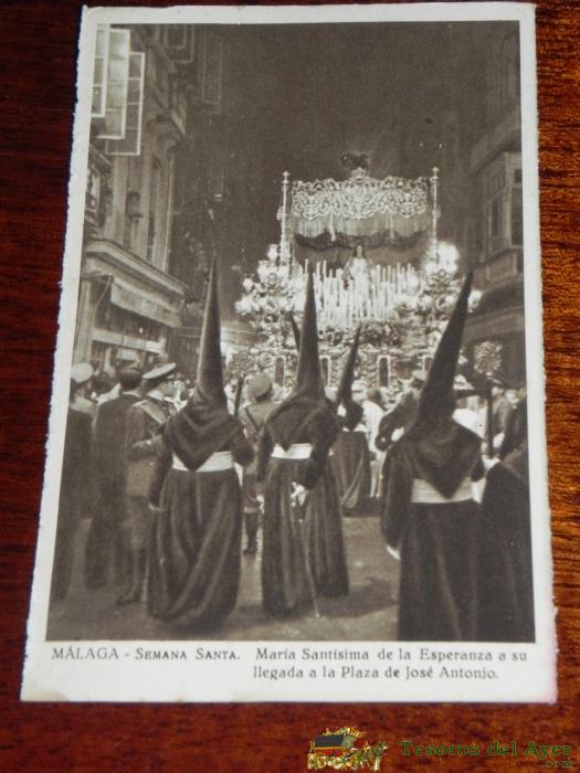 ANTIGUA POSTAL DE MALAGA, SEMANA SANTA, MARIA SANTISIMA DE LA ESPEREANZA, ED. AGRUPACION DE COFRADIAS DE MALAGA, NO CIRCULADA.