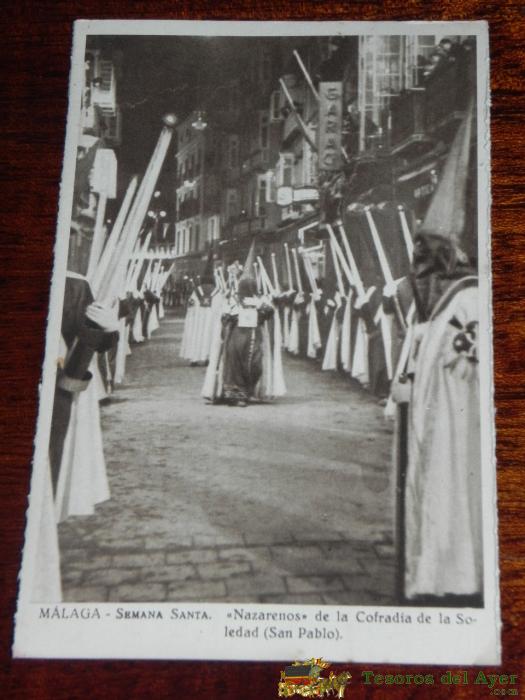 ANTIGUA POSTAL DE MALAGA, SEMANA SANTA, NAZARENOS DE LA COFRADIA DE LA SOLEDAD, ED. AGRUPACION DE COFRADIAS DE MALAGA, NO CIRCULADA.