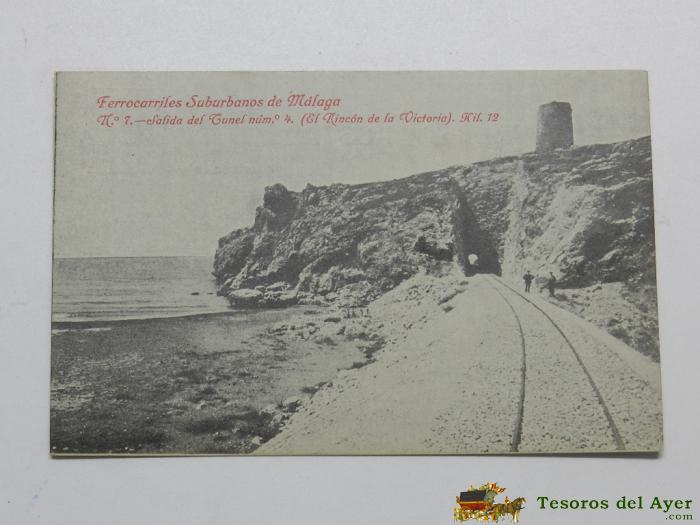 ANTIGUA POSTAL DE FERROCARRILES SUBURBANOS DE MALAGA, N. 7, SALIDA DEL TUNEL NUM. 4, RINCON DE LA VICTORIA, KIL. 12, NO CIRCULADA.