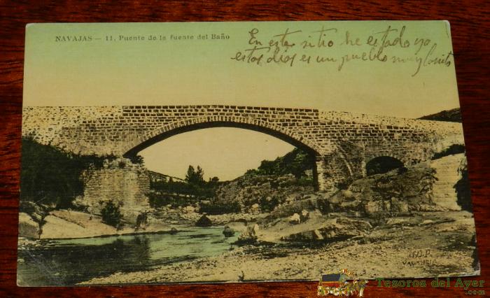 POSTAL DE NAVAJAS, CASTELLON, PUENTE DE LA FUENTE DEL BAÑO, N. 11. ED. J.DURA PEREZ, NO CIRCULADA, ESCRITA.