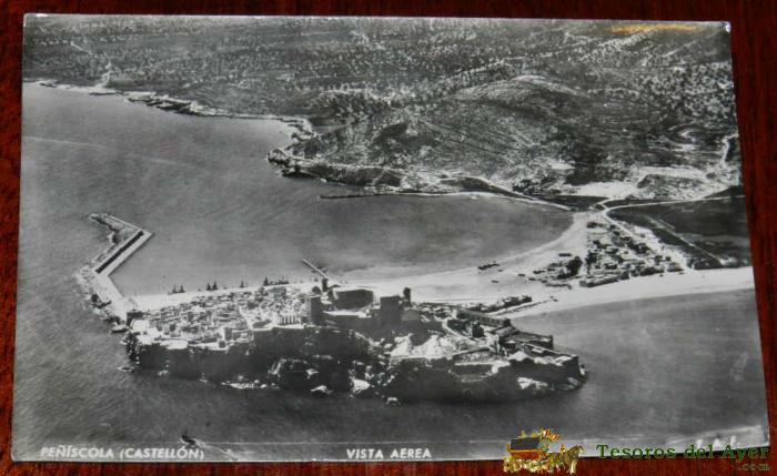 ANTIGUA FOTO POSTAL DE PEñISCOLA, CASTELLON, VISTA AEREA, ED. ZERKOWITZ, CIRCULADA.