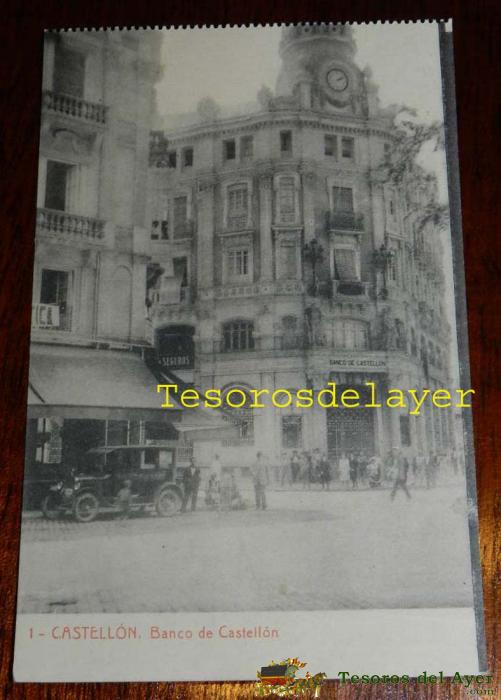 ANTIGUA POSTAL DE CASTELLON, N. 1, BANCO DE CASTELLON, ED. THOMAS, LIBRERIA VIUDA DE B. BALLESTER, NO CIRCULADA.