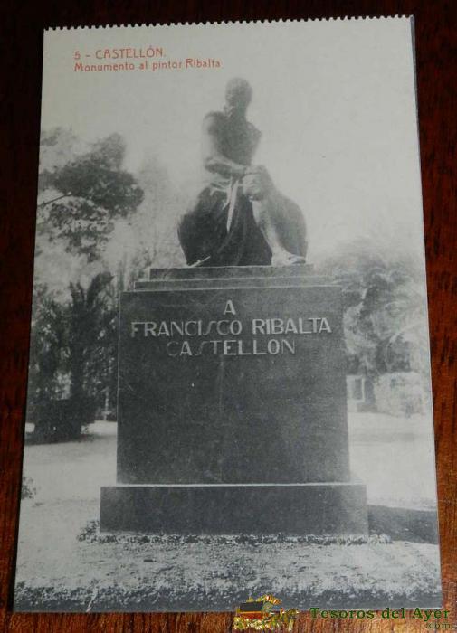 ANTIGUA POSTAL DE CASTELLON, N. 5, MONUMENTO AL PINTOR RIBALTA, ED. THOMAS, LIBRERIA VIUDA DE B. BALLESTER, NO CIRCULADA.