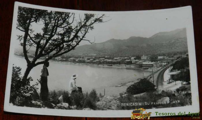 ANTIGUA FOTO POSTAL DE BENICASIM (CASTELLON). SU FAMOSA PLAYA, REGTOR, CIRCULADA