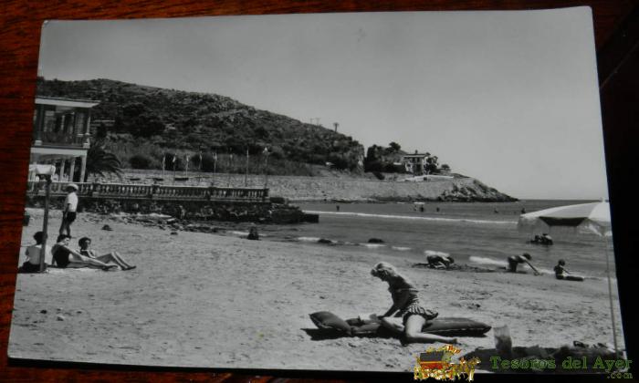 ANTIGUA FOTO POSTAL DE BENICASIM (CASTELLON) VISTA PARCIAL DE LA PLAYA, EDICIONES COMAS ALDEA 11, CIRCULADA