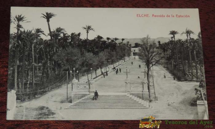 POSTAL DE ELCHE, ALICANTE, AVENIDA DE LA ESTACION, FOTOTIPIA THOMAS. SIN CIRCULAR