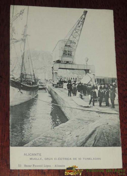 POSTAL DE ALICANTE. Nº 53. BAZAR PASCUAL LóPEZ. MUELLE, GRUA ELéCTRICA DE 10 TONELADAS. SIN CIRCULAR. ED. HAUSER Y MENET.