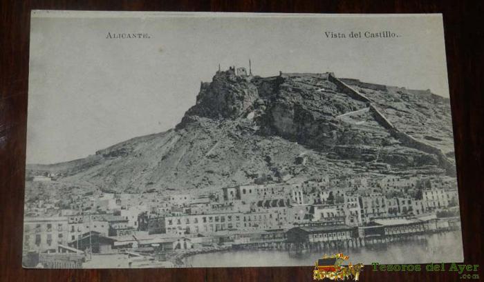 POSTAL DE ALICANTE, VISTA DEL CASTILLO, ED. ESPAÑA MONUMENTAL SERIE XII, NUM 72, FOTOTIPIA LACOSTE, MADRID, NO CIRCULADA, REVERSO CON LA HISTORIA DEL CASTILLO.