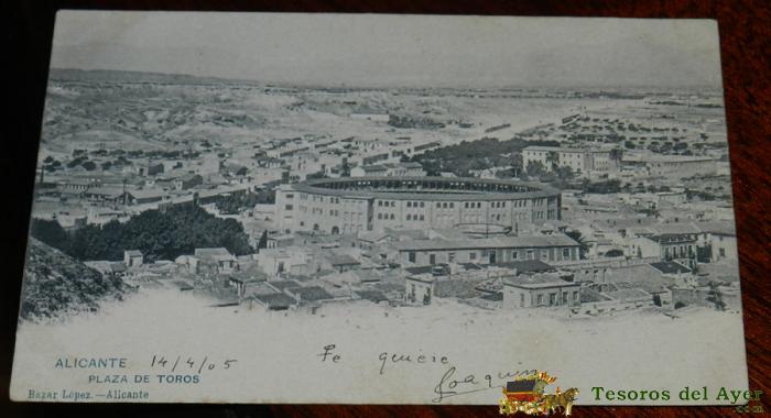 ANTIGUA POSTAL DE ALICANTE, PLAZA DE TOROS, BAZAR LOPEZ, ED. HAUSER Y MENET, NO CIRCULADA. ESCRITA, SIN DIVIDIR.