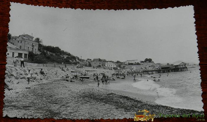 ANTIGUA FOTO POSTAL DE VILLAJOYOSA, ALICANTE, PLAYA Y BAÑOS, EDICION GALIANA. NUM: 9. NO CIRCULADA.