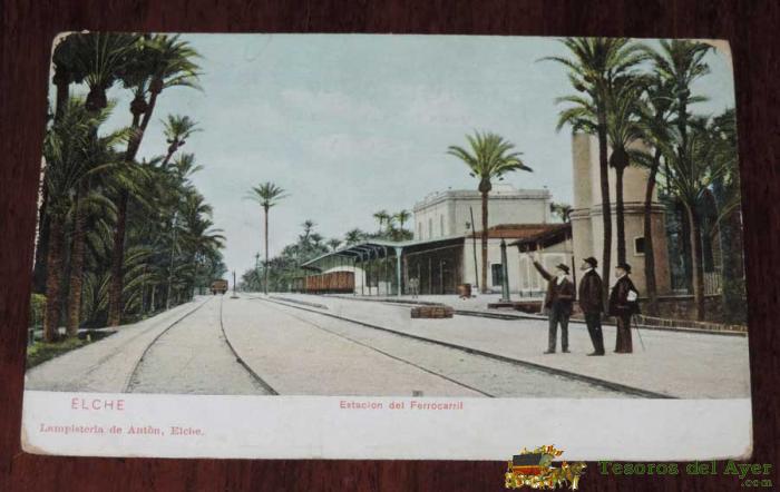 POSTAL DE ELCHE (ALICANTE) : J. PICO - ESTACION DEL FERROCARRIL, POSTAL ESCRITA. LAMPISTERIA DE ANTON, ELCHE. FOTOGRAFO J. PICO.