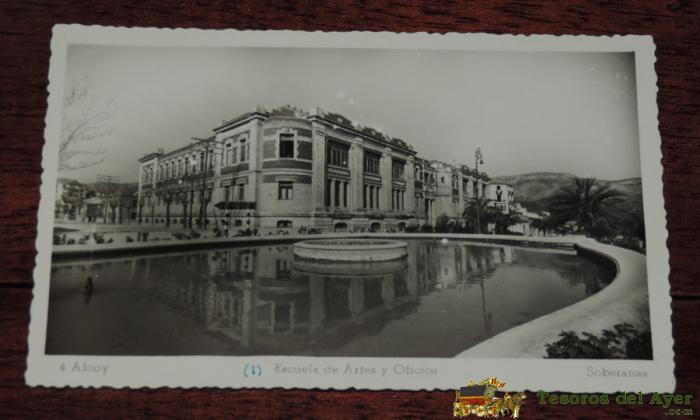 FOTO POSTAL DE ALCOY (ALICANTE) ESCUELA DE ARTES Y OFICIOS, SOBERANAS Nº 4, ESCRITA