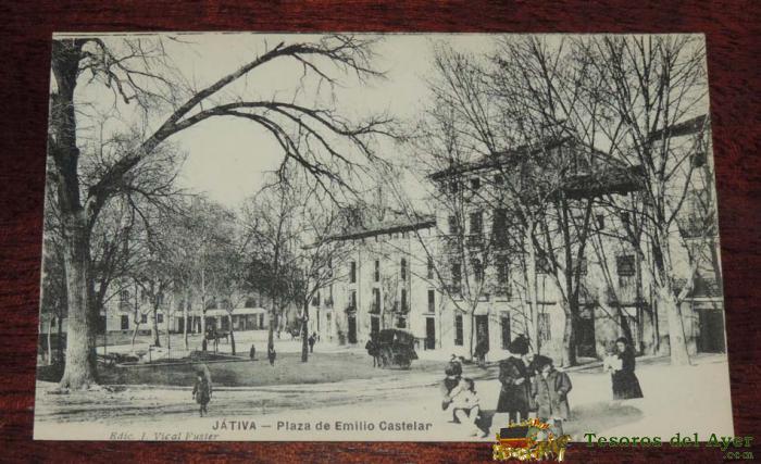 POSTAL JATIVA, VALENCIA, PLAZA DE EMILIO CASTELAR, ED. J. VICAL FUSTER, NO CIRCAULADA.