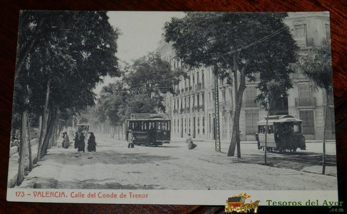 ANTIGUA POSTAL DE VALENCIA Nº 173, CALLE DEL CONDE DE TRENOR, (TRANVIA), NO CIRCULADA, ESCRITA.