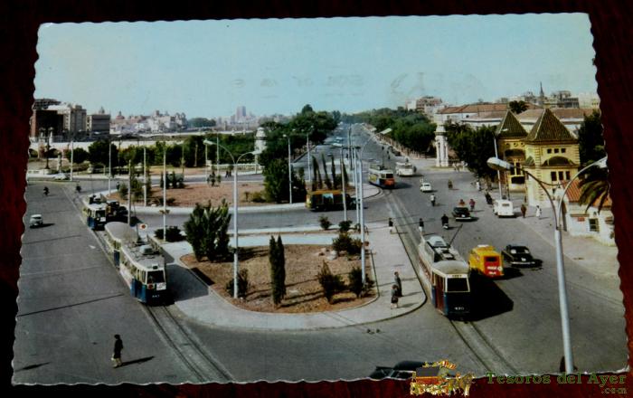 ANTIGUA FOTO POSTAL DE VALENCIA, PLAZA DE ARAGON Y ALAMEDA, N. 32, TRANVIA, ED. GARCIA GARRABELLA, CIRCULADA.