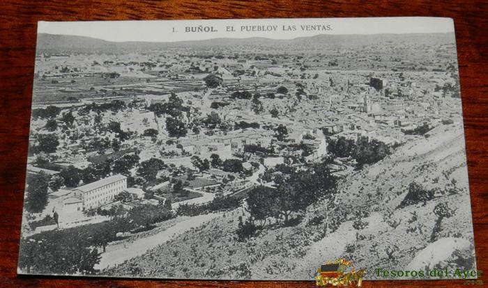 ANTIGUA POSTAL DE BUÑOL, N. 1, PUEBLO Y LAS VENTAS, NO CIRCULADA, COLECCION V. FERNANDEZ.