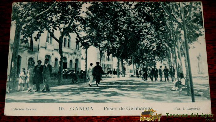 GANDIA , VALENCIA, PASEO DE GERMANIAS, FOTO. I. LAPORTA 10, EDICION FERRER, CIRCULADA