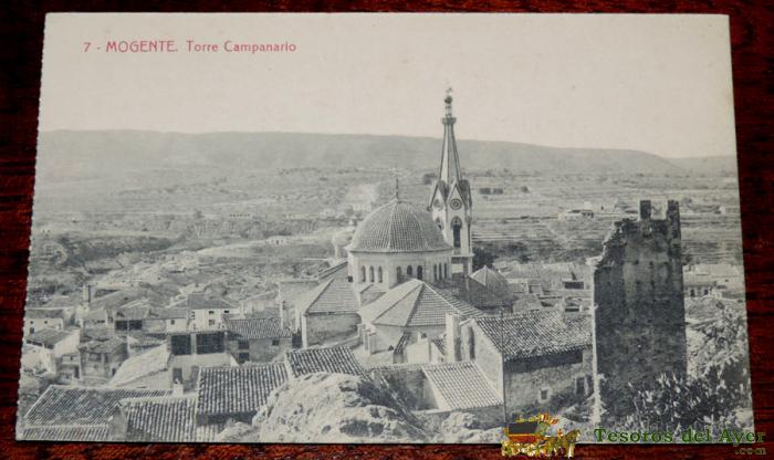 POSTAL DE MOGENTE, VALENCIA. TORRE CAMPANARIO. FOTOTIPIA THOMAS Nº 7. FOT. J.CARDóS. NO CIRCULADA.