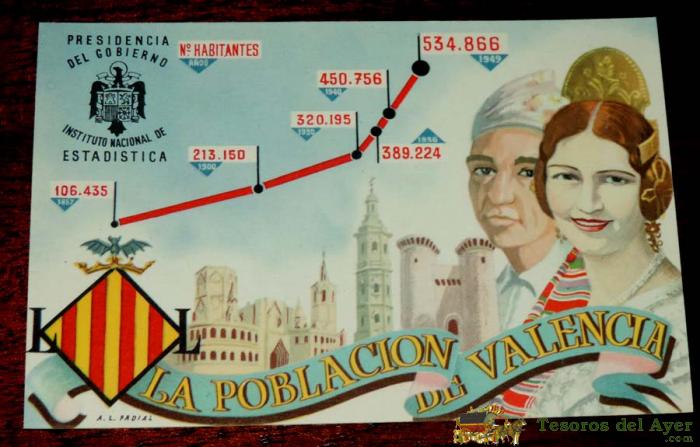 POSTAL: LA POBLACION DE VALENCIA 1857 - 1949. INSTITUTO NACIONAL DE ESTADISTICA. SIN CIRCULAR