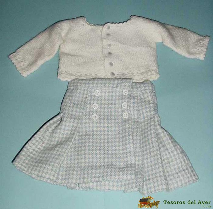 CONJUNTO DE FALDA Y REBECA PARA MUÑECAS DEL TAMAÑO DE MARIQUITA PEREZ (CONFECCIÓN CASERA)