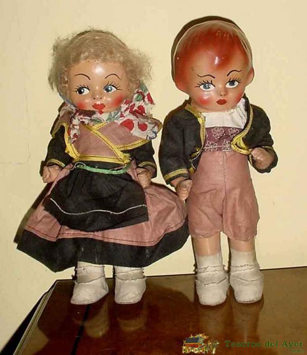 PAREJA DE MUÑECOS DE CARTON PIEDRA DE LA SERIE QUE HACIA LA CASA GROS PARA MUÑECAS REGIONALES. SON UN ENCANTO Y ESTAN MUY BIEN DECORADOS COMO TODO LO QUE HACIAN EN LA CASA GROS
