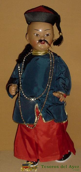 ANTIGUO MUÑECO CHINO MANDARIN-DE LA CASA FLORIDO- AÑOS 50- REALIZADO EN CARTON PIEDRA OJO FIJO-