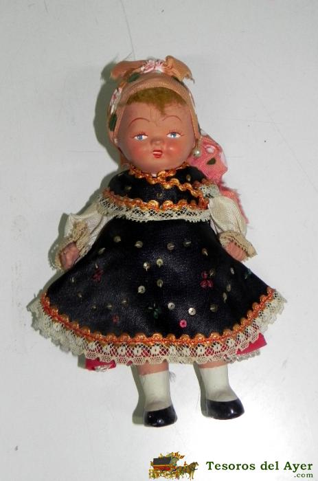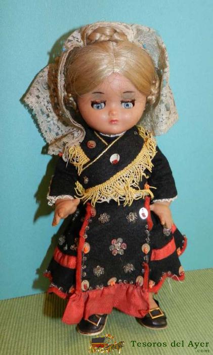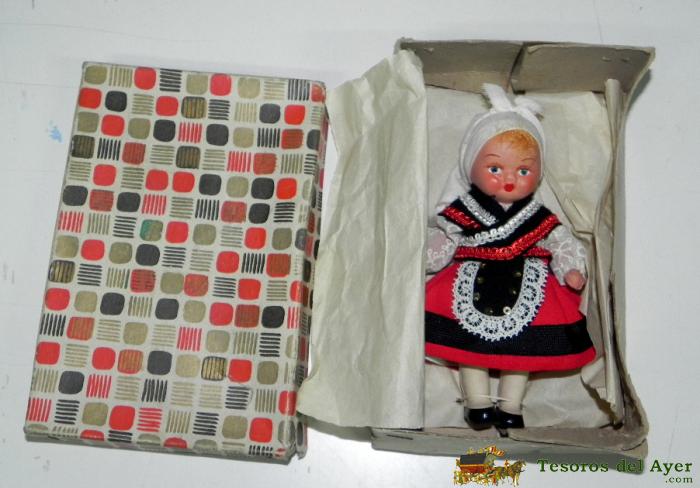 PRECIOSA MUÑECA CON TRAJE REGIONAL ASTURIANA, ASTURIAS, EN SU CAJA ORIGINAL NUNCA JUGUADA (ESTA SUJETA CON LA CUERDA ORIGINAL DE LA JUGUETERIA, LA MUÑECA MIDE 13 CMS Y LA CAJA 16 CMS.