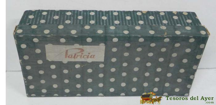 ANTIGUA CAJA DE CARTON DE LA MUÑECA ESPAÑOLA, PATRICIA DE FLORIDO, EPOCA MARIQUITA PÉREZ, BUEN ESTADO, ESQUINAS LIGERAMENTE ROZADAS, MIDE 52 X 24 X 12 CMS.