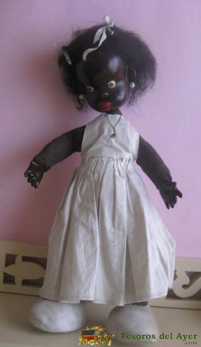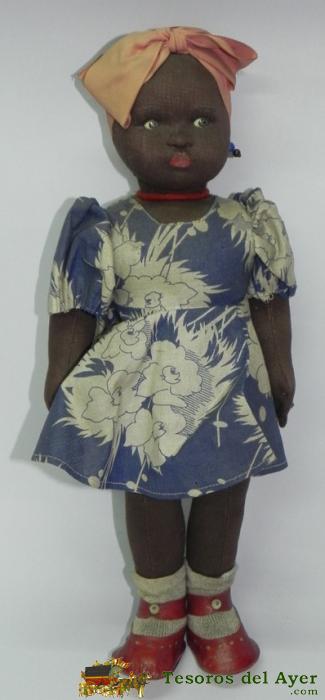 ANTIGUO MUÑECA NEGRITA DE TELA, AÑOS 30, MIDE 34 CMS. ZAPATOS DE PIEL, TAL COMO SE VE EN LAS FOTOGRAFIAS PUESTAS. ESPAÑOL. TIPO PAGES, LENCY.