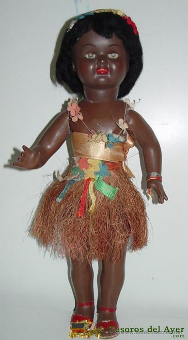 BONITA MUÑECA HAWAIANA - CHELITO,1950 -CARA DE CELULOIDE, CUERPO DE CARTÓN PIEDRA - PELO NATURAL-OJO DURMIENTE COLOR AZUL- TODA DE ORIGEN-SE ENCUENTRA EN BUEN ESTADO. MIDE 40 CM