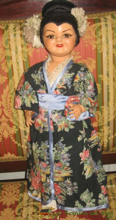 ANTIGUA MUÑECA CHELITO AÑOS 40. CORRESPONDE AL PRIMER MODELO, REALIZADA EN CARTÓN PIEDRA, CABELLO PEINADO DE ACUERDO AL TRAJE DE JAPONESA. OJO DE CRISTALINO, ROPA DE ORIGEN. ES PRECIOSA ..