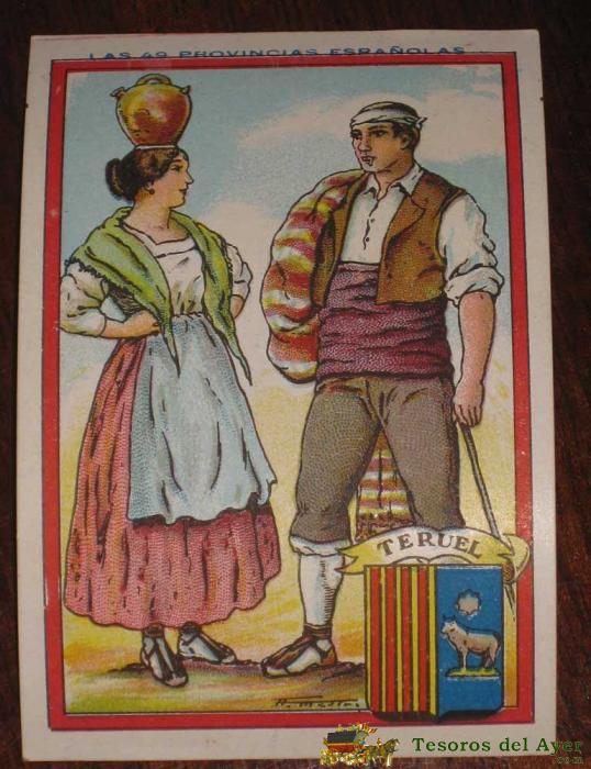 ANTIGUO CROMO DE TRAJES REGIONALES DE TERUEL - PUBLICIDAD DE CHOCOLATES AMATLLER - MIDE UN POQUITO MENOS QUE UNA POSTAL 10 X 6,8 CMS.