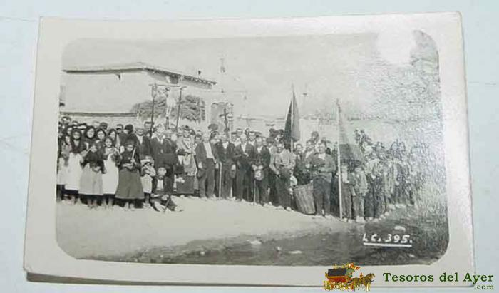 ANTIGUA FOTOGRAFIA DE PROCESION EN CAUDE - TERUEL - FOT. L. CLAVERO - AÑO 1925 - MIDE 6,8 X 4,5 CMS.