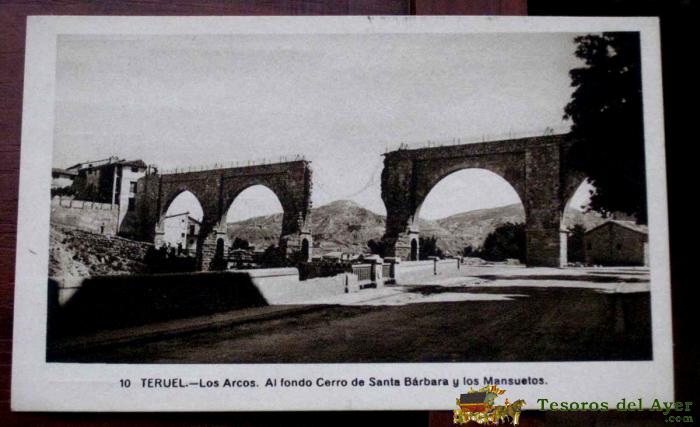 ANTIGUA POSTAL DE TERUEL - LOS ARCOS, AL FONDO CERRO DE SANTA BARBARA Y LOS MANSUETOS - 10 ARRIBAS . SIN CIRCULAR