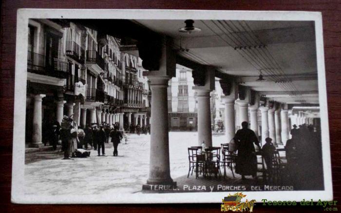 ANTIGUA FOTOGRAFIA POSTAL DE TERUEL - PLAZA Y PORCHES DEL MERCADO - SIN CIRCULAR