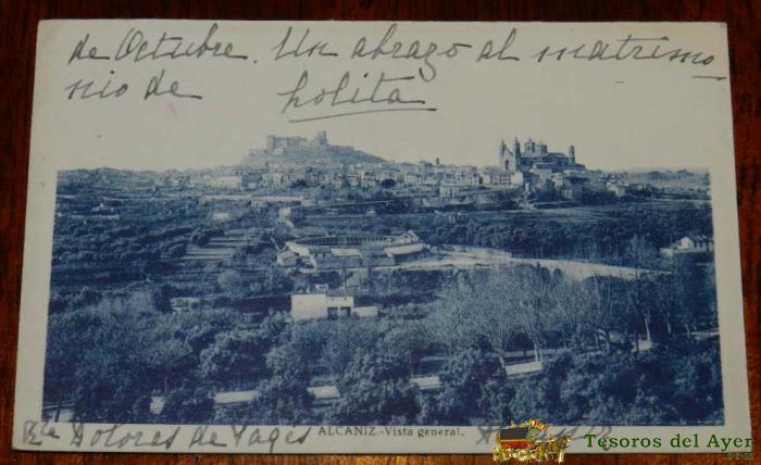 ANTIGUA POSTAL DE ALCAñIZ, TERUEL, VISTA GENERAL, CIRCULADA.