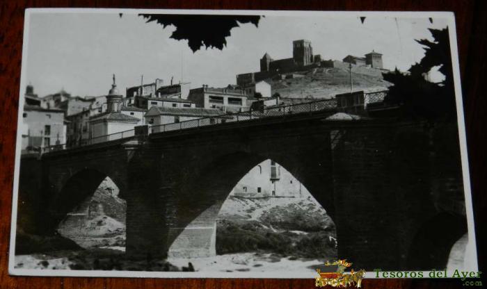 ANTIGUA FOTO POSTAL DE ALCAÑIZ, TERUEL, N.36, PUENTE DE PIEDRA SOBRE EL RIO GUADALUPE, CIRCULADA, ED. SICILIA.
