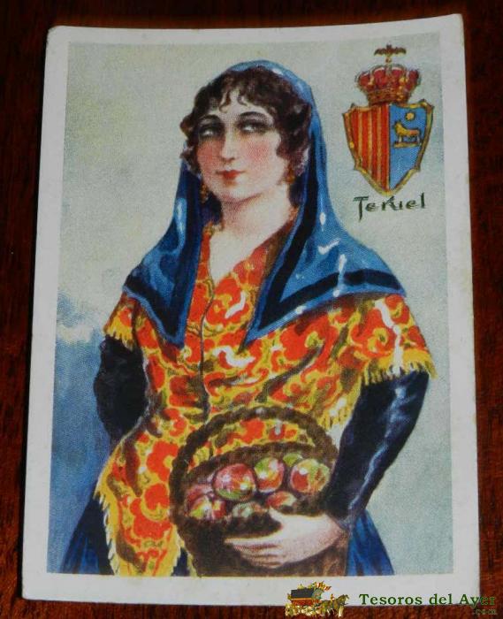 ANTIGUO CROMO DE TERUEL, TRAJE REGIONAL - PUBLICIDAD DE CHOCOLATES AMATLLER - MIDE UN POQUITO MENOS QUE UNA POSTAL 10 X 6,8 CMS.