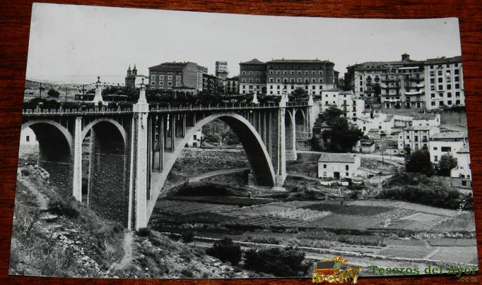 ANTIGUA FOTO POSTAL DE TERUEL - VIADUCTO Y MINISTERIOS - ED. SICILIA Nº 33, CIRCULADA