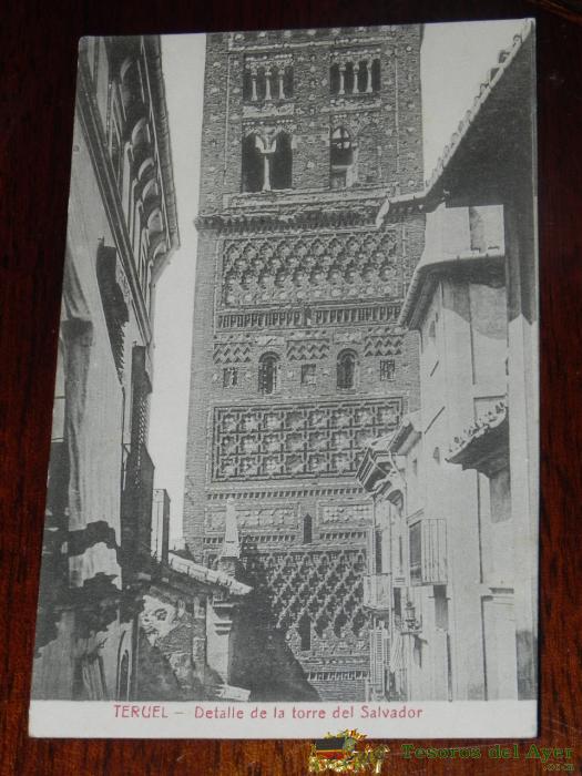 ANTIGUA POSTAL DE TERUEL, DETALLE DE LA TORRE DEL SALVADOR, ED. LUIS VILLANUEVA, NO CIRCULADA, ESCRITA.