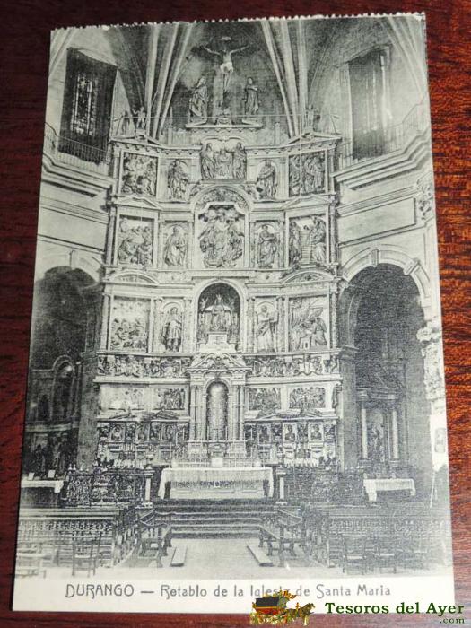 POSTAL DE DURANGO (VIZCAYA).- RETABLO DE SANTA MARIA, FOTO GERMAN, NO CIRCULADA.