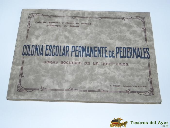 COLONIA ESCOLAR PERMANENTE DE PEDERNALES. BIZKAIA. CAJA AHORROS Y MONTE DE PIEDAD MUNICIPAL BILBAO, ED. L. ROISIN. BLOC DE 32 LAMINAS DE 21 X 15 CMS. 1) ENTRADA A LA FINCA POR AL CARRETERA DE BERMEO, 2) VIVIENDA DEL GUARDA Y PASO AL RECINTO DE LA COLONIA