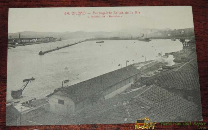 ANTIGUA POSTAL DE BILBAO, N.64, PORTUGALETE SALIDA DE LA RIA, ED. L. ROISIN, CIRCULADA.