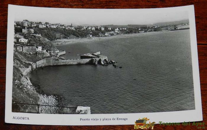 FOTO POSTAL DE ALGORTA, PUERTO VIEJO Y PLAYA DE EREAGA, ED. MANIPEL, NO CIRCULADA, ESCRITA EN 1958.