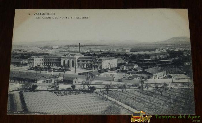 ANTIGUA POSTAL DE VALLADOLID. ESTACION DEL NORTE Y TALLERES, N. 5, ED. L.J. SIN CIRCULAR.