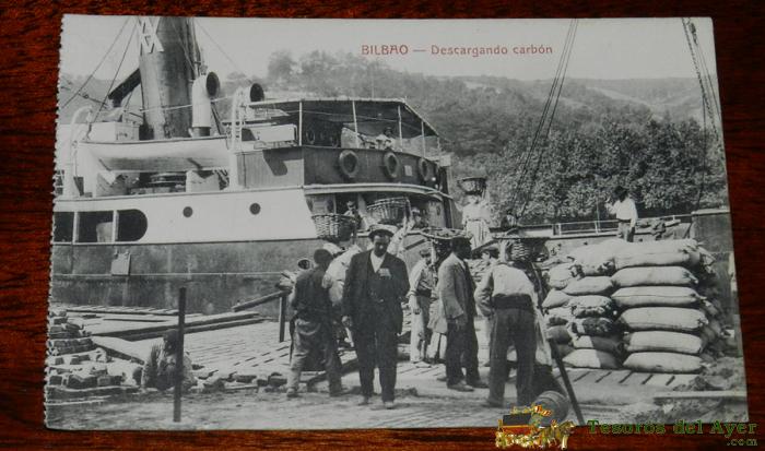 POSTAL DE BILBAO. DESCARGANDO CARBÓN. ED. G. G. M. NO CIRCULADA.